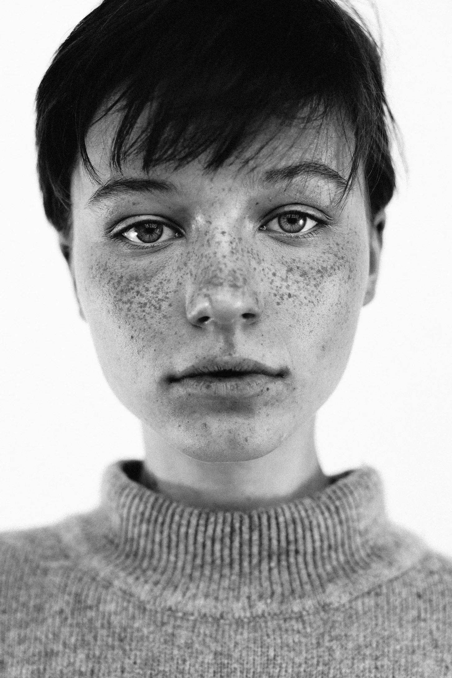 1️⃣ black and white portrait photo of a girl with freckles, in the style of the düsseldorf school of photography, genderless, hasselblad 1600f, national geographic photo, swiss realism, ricoh r1, photo taken with fujifilm superia — ar 85:128